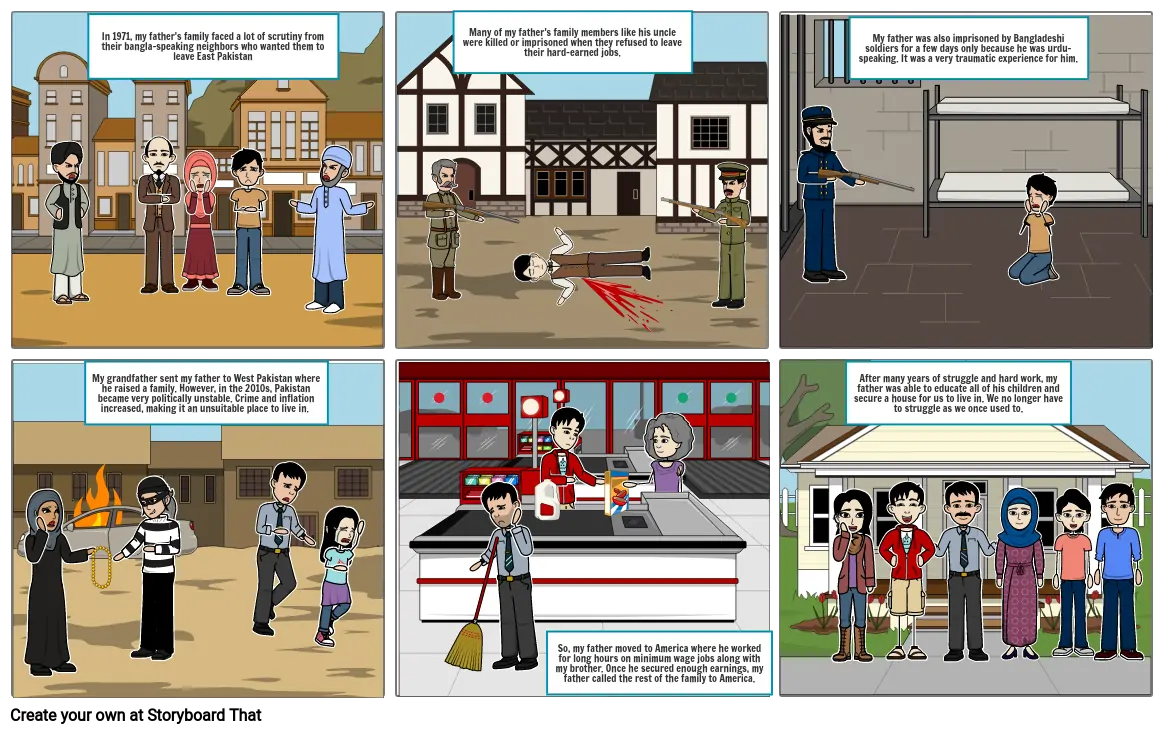 So, my father moved to America where he worked for long hours on minimum wage jobs along with my brother. Once he secured enough earnings, my father called the rest of the family to America.