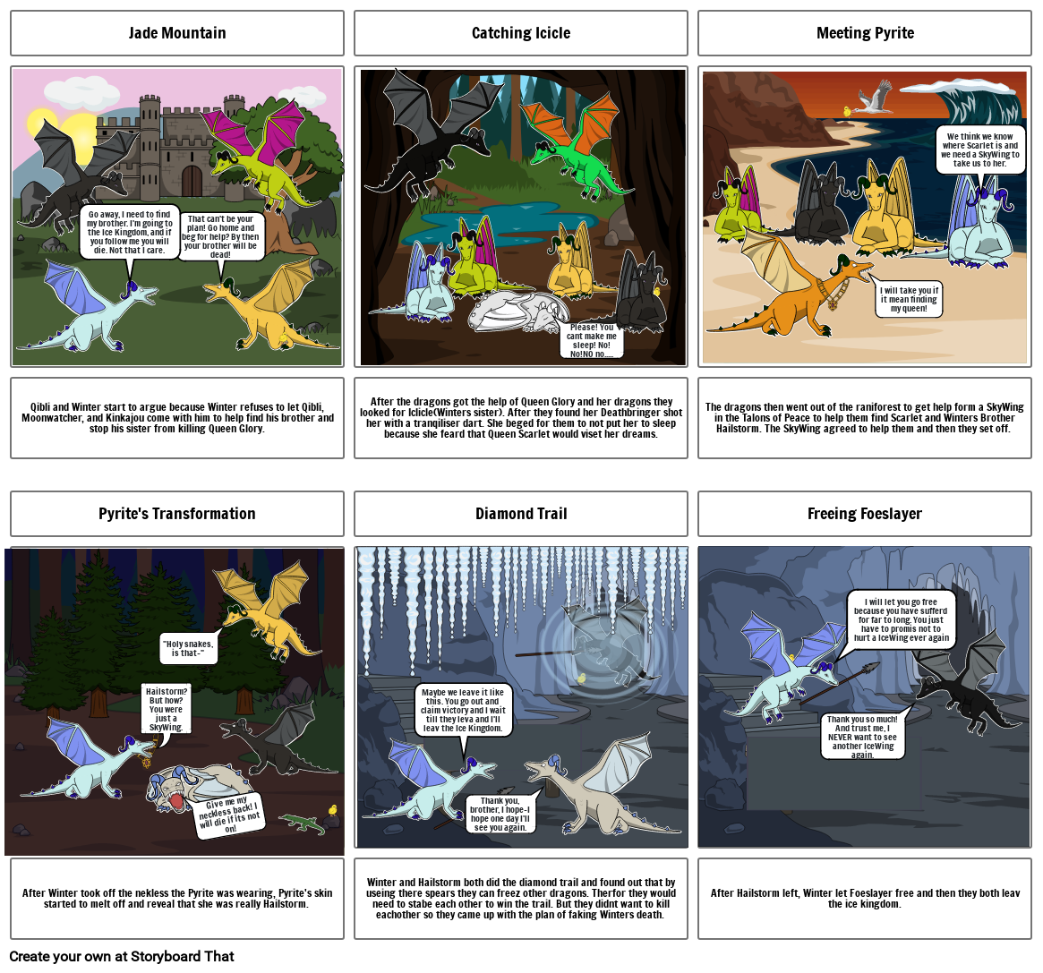 Qibli and Winter start to argue because Winter refuses to let Qibli, Moonwatcher, and Kinkajou come with him to help find his brother and stop his sister from killing Queen Glory.