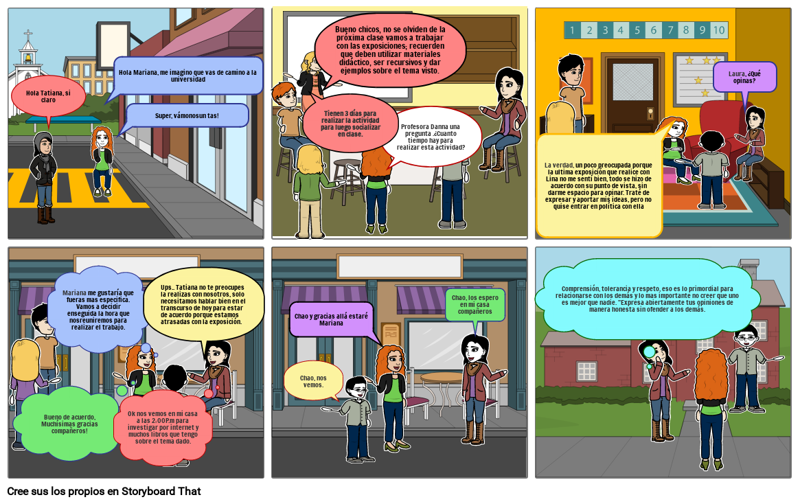 La verdad, un poco preocupada porque la ultima exposición que realice con Lina no me sentí bien, todo se hizo de acuerdo con su punto de vista, sin darme espacio para opinar. Traté de expresar y aportar mis ideas, pero no quise entrar en política con ella