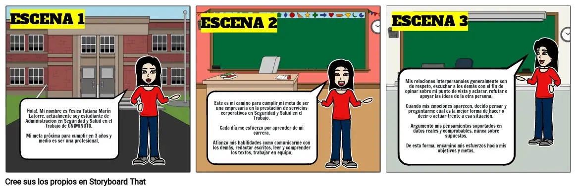 Hola!, Mi nombre es Yesica Tatiana Marín Latorre, actualmente soy estudiante de Administracion en Seguridad y Salud en el Trabajo de UNIMINUTO.Mi meta próxima para cumplir en 3 años y medio es ser una profesional.