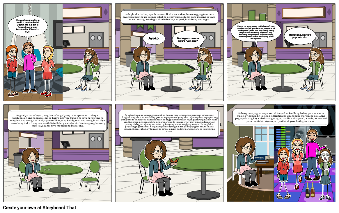 Nabigla si Kristina, ngunit nasasabik din. Sa wakas, ito na ang pagkakataon niya para maging isa sa mga sikat na estudyante, at hindi para maging katawa-tawa lamang. Tumingin si Kristina kay Raquel, hinihintay ang sagot.