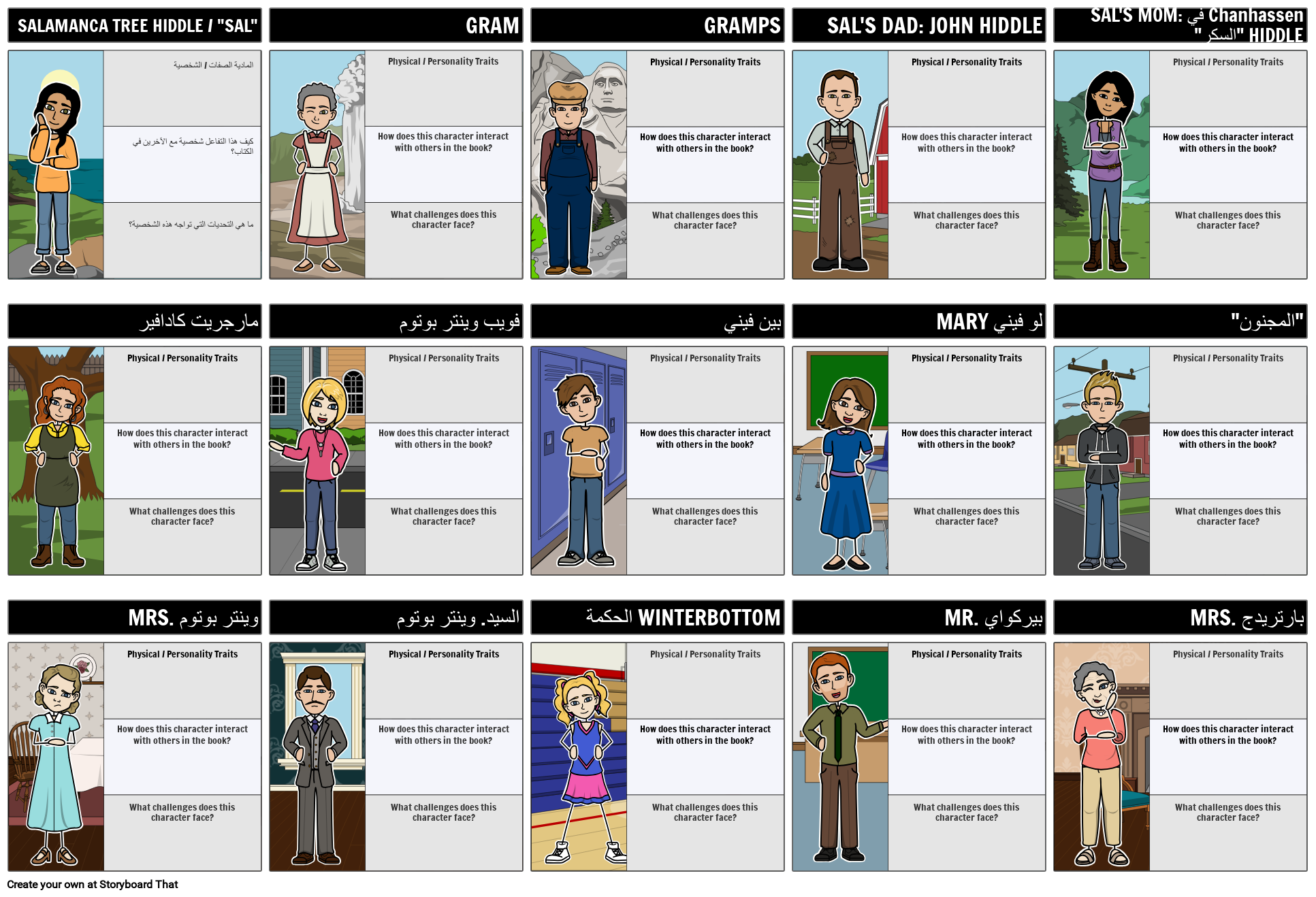 يمكن للطلاب رسم شخصيات كتاب والكتابة عن كل سمات جسدية / شخصية ، وتفاعلاتهم مع الآخرين والتحديات التي يواجهونها.