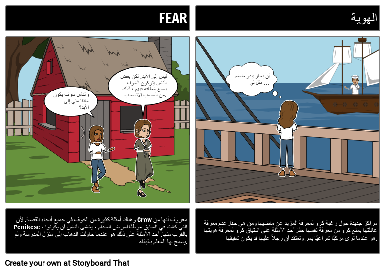 وهناك أمثلة كثيرة من الخوف في جميع أنحاء القصة. لأن Crow معروف أنها من Penikese ، التي كانت في السابق موطنًا لمرض الجذام ، يخشى الناس أن يكونوا بالقرب منها. أحد الأمثلة على ذلك هو عندما حاولت الذهاب إلى منزل المدرسة ولم يسمح لها المعلم بالبقاء.