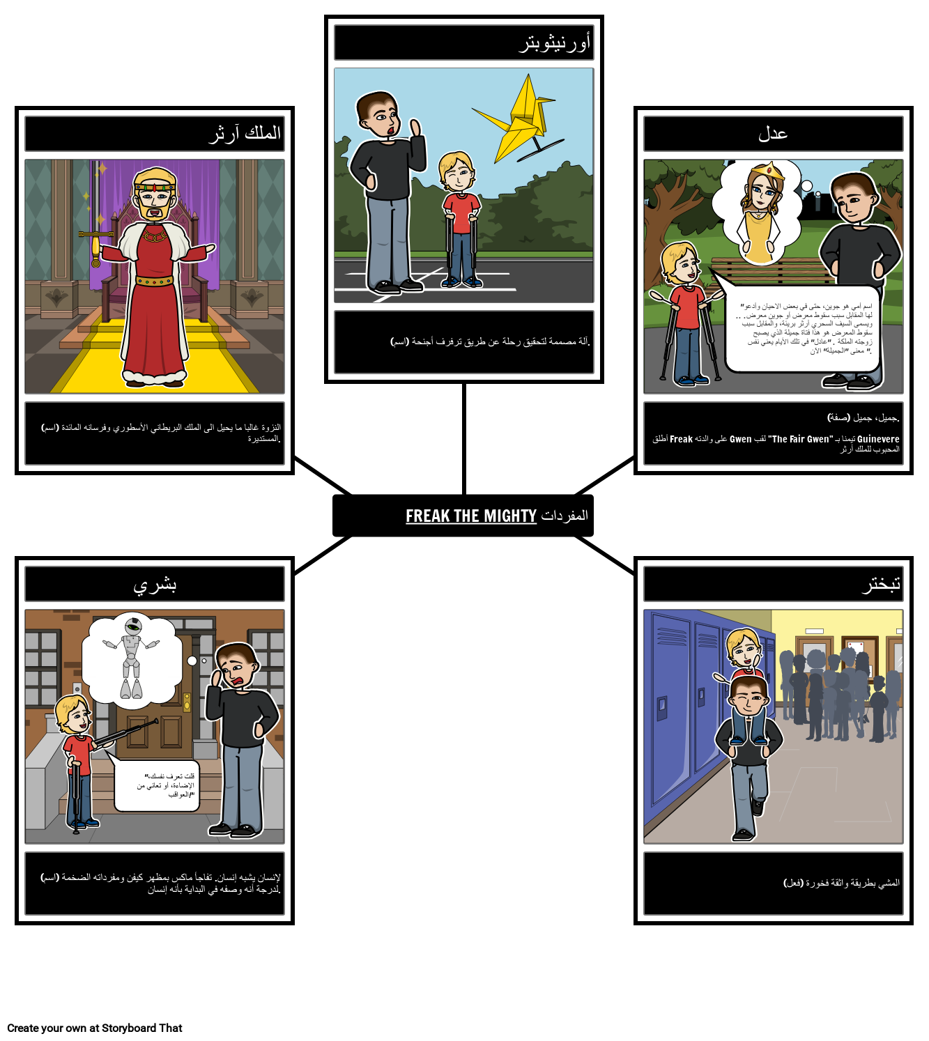 اطلب من الطلاب إنشاء خريطة عنكبوتية للمفردات المرئية لـ Freak the Mighty بواسطة Rodman Philbrick
