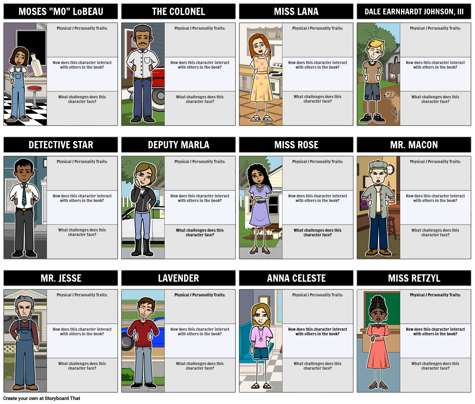 • Physical / Personality Traits: How does this character interact with others in the book? What challenges does this character face?