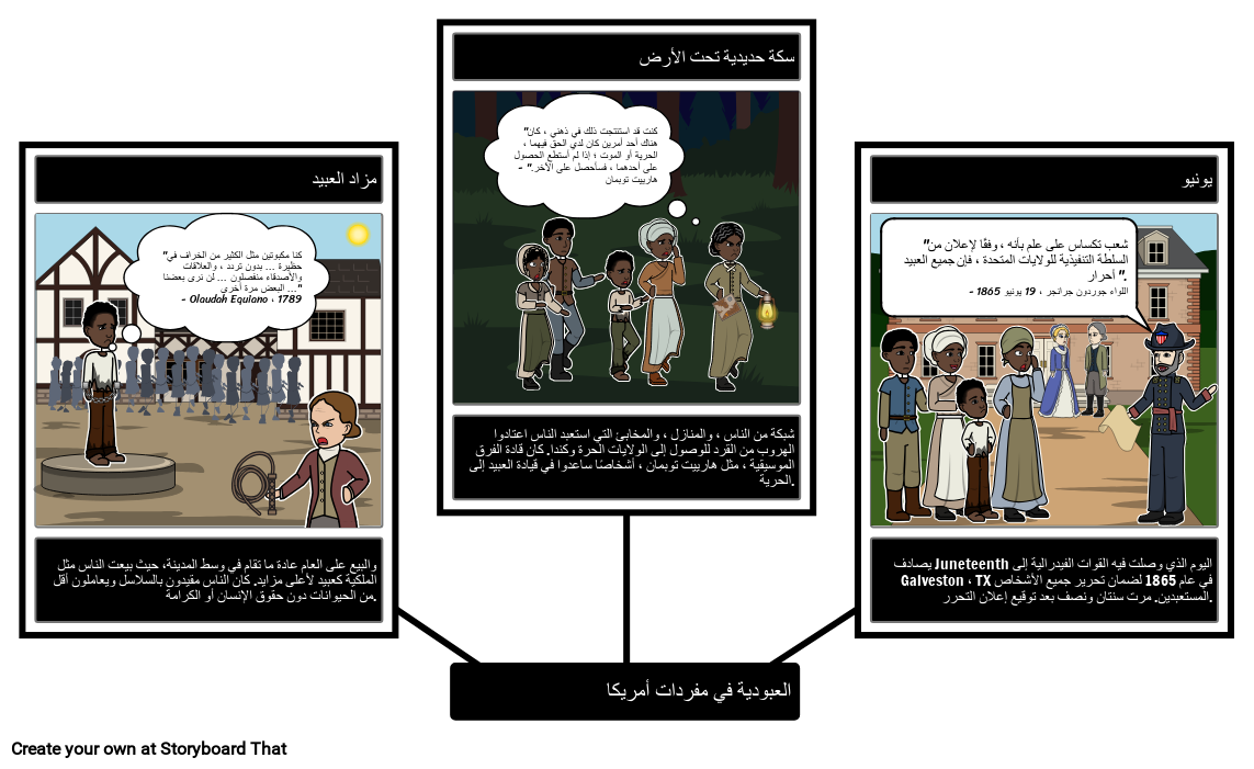 قم بإنشاء لوحة عمل توضح المفردات المتعلقة بالرق في الأمريكتين.
