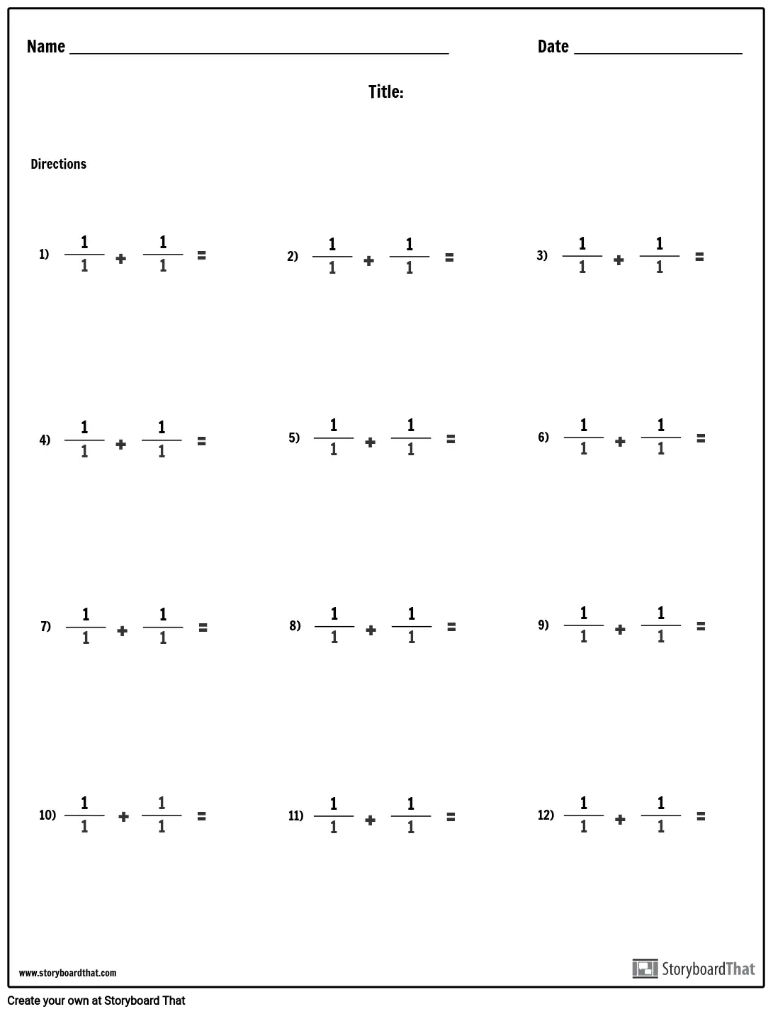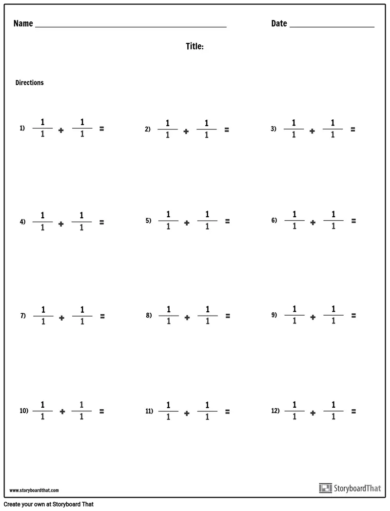 أوراق عمل الإضافة المخصصة | قم بعمل أوراق عمل لإضافة الكسور المخصصة لطلابك!