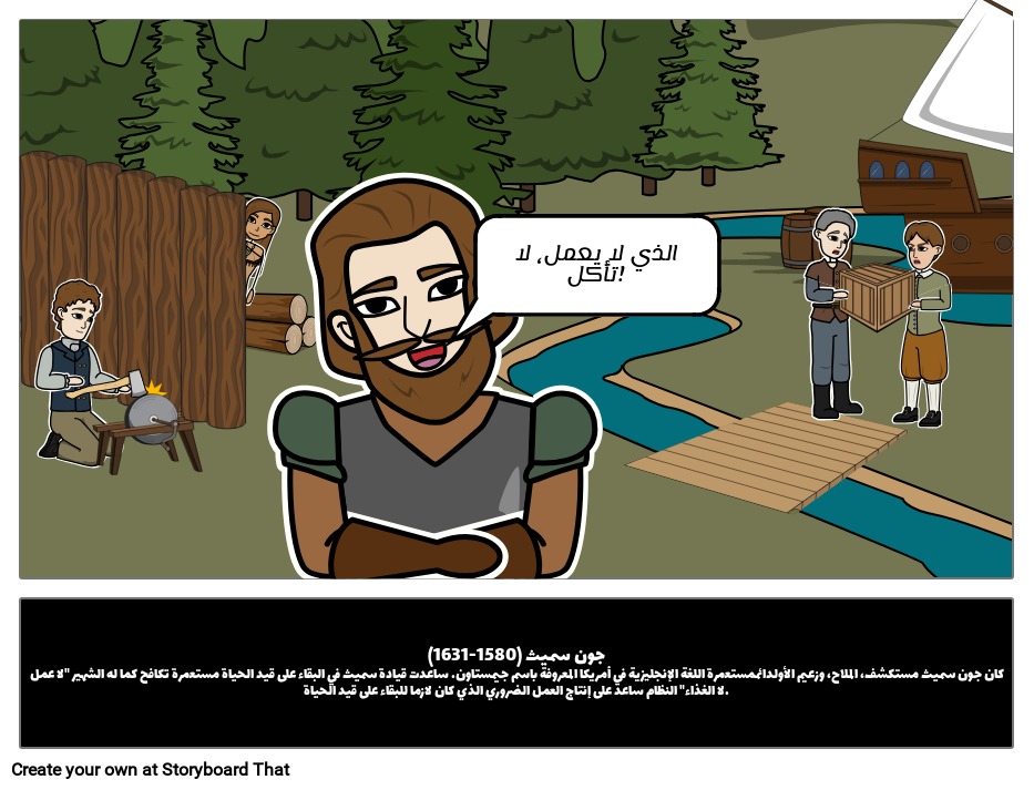 جون سميث (1580-1631)كان جون سميث مستكشف، الملاح، وزعيم الأولدائممستعمرة اللغة الإنجليزية في أمريكا المعروفة باسم جيمستاون. ساعدت قيادة سميث في البقاء على قيد الحياة مستعمرة تكافح كما له الشهير "لا عمل لا الغذاء" النظام ساعد على إنتاج العمل الضروري الذي كان لازما للبقاء على قيد الحياة.