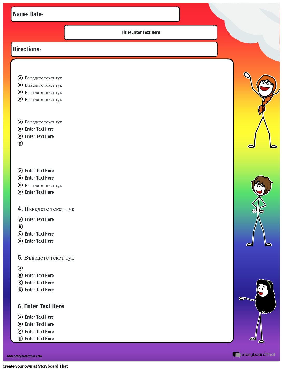 Въпроси с 6 избора на избор на тема дъга