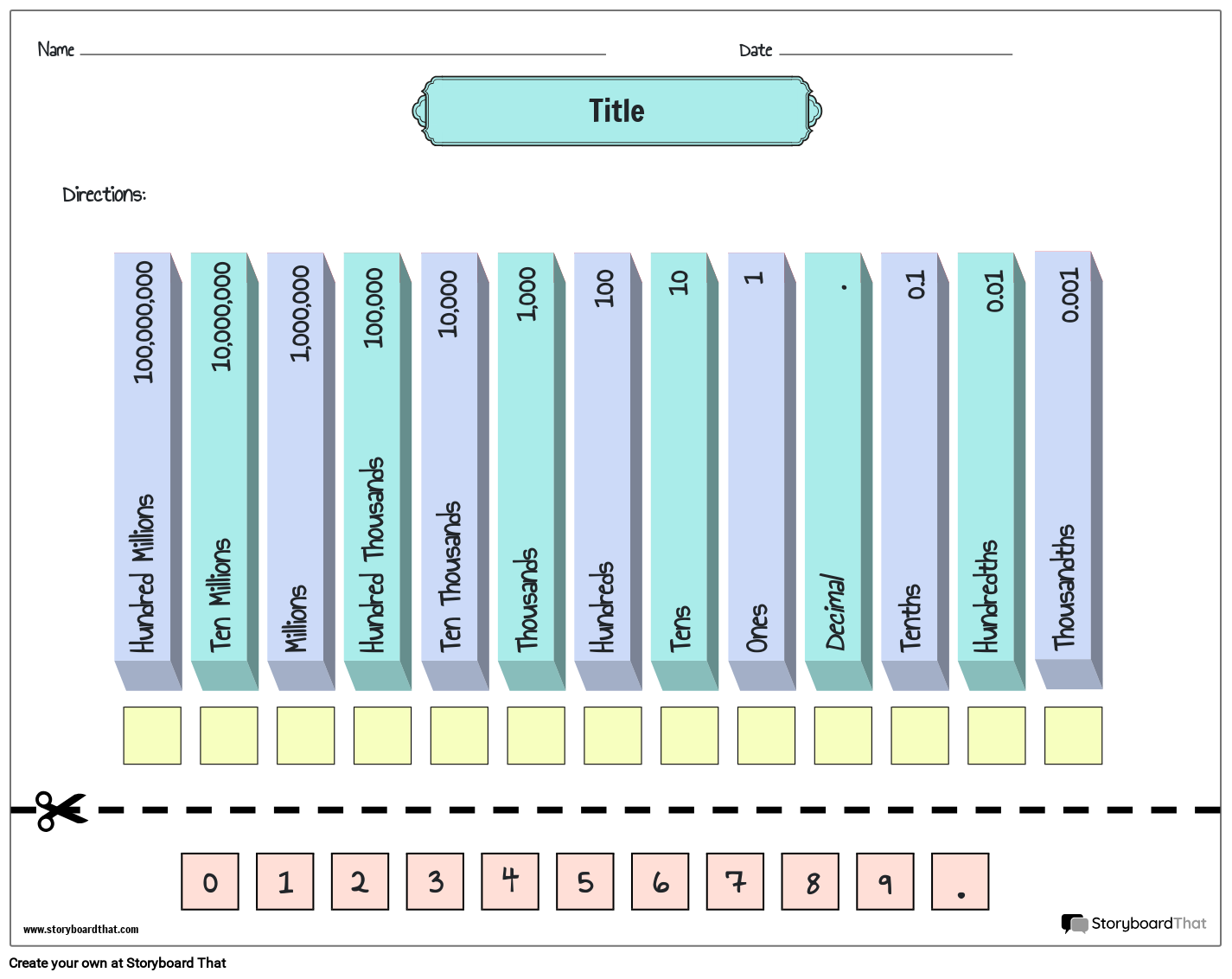 Създайте персонализирани работни листове за стойност на място за математика! | Изрежете числата и ги поставете на местата, когато учителят каже число.