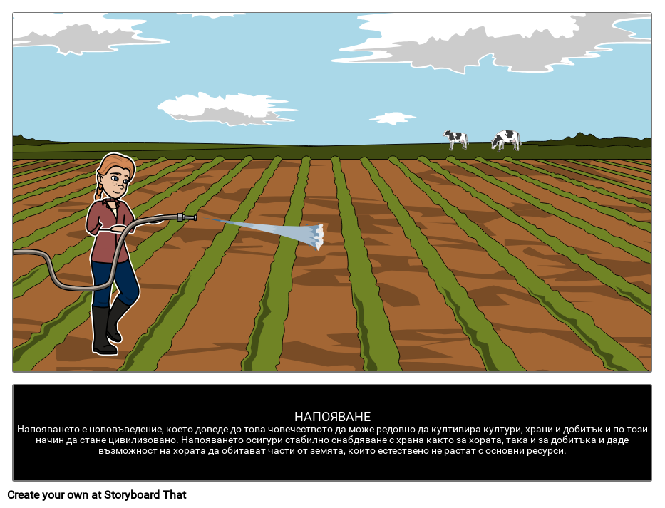 Напояване | Напояването е нововъведение, което доведе до това човечеството да може редовно да култивира култури, храни и добитък и по този начин да стане цивилизовано. Напояването осигури стабилно снабдяване с храна както за хората, така и за добитъка и даде възможност на хората да обитават части от земята, които естествено не растат с основни ресурси.