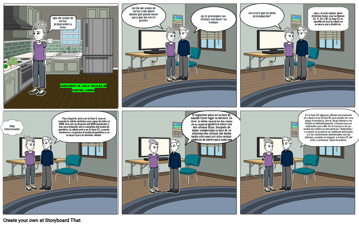 El siguiente paso es la fase M, cuando tiene lugar la mitosis. Es decir, la célula reparte las dos copias de su material genético entre sus dos células hijas. Después de haber completado la fase M, se obtienen dos células (de donde había sólo una) y el ciclo celular empieza de nuevo para cada una de ellas.