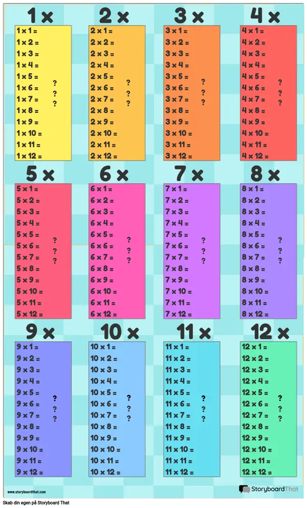 Multipliceringstabel Plakatskabeloner er gode til matematik!
