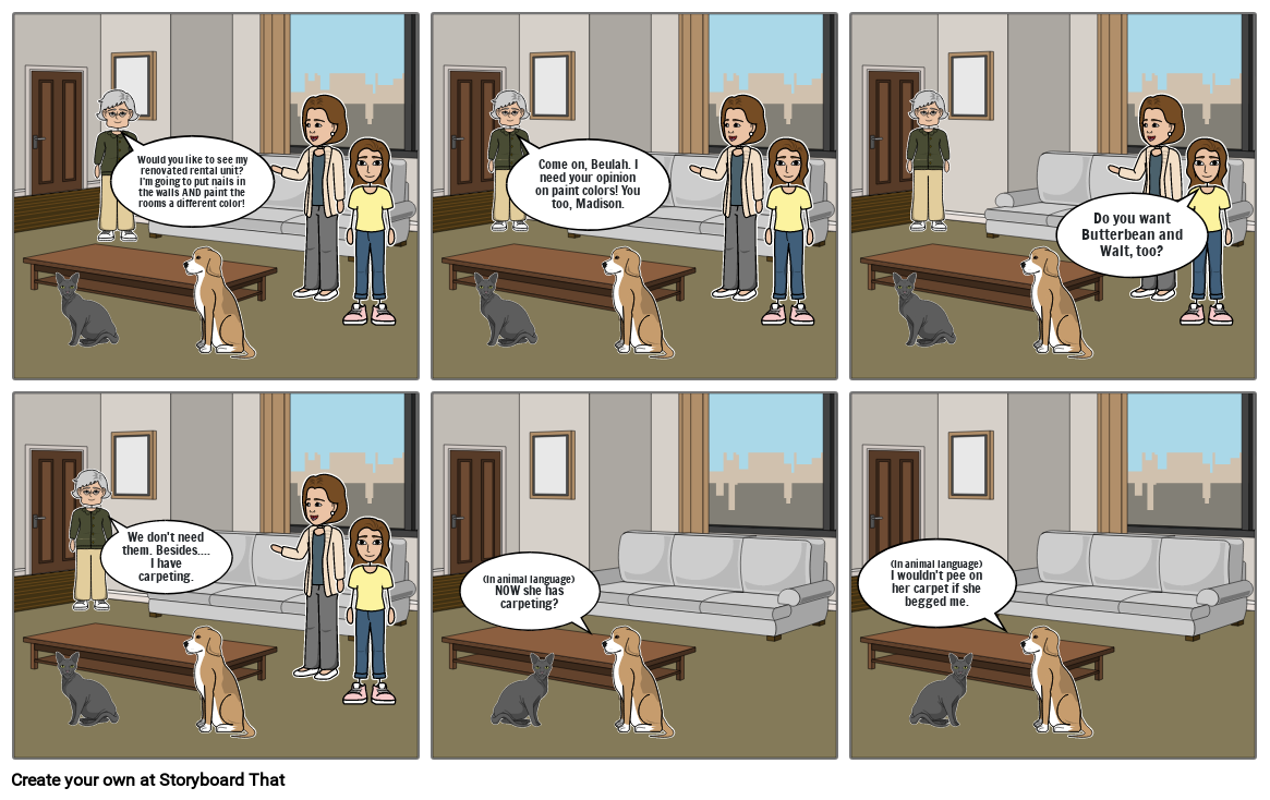 (In animal language)NOW she has carpeting?