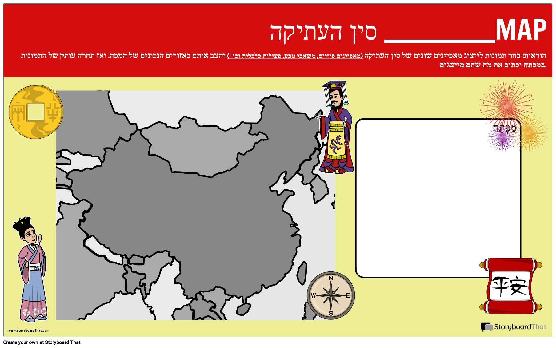הוראות: בחר תמונות לייצוג מאפיינים שונים של סין העתיקה (מאפיינים פיזיים, משאבי טבע, פעילות כלכלית וכו ') והצב אותם באזורים הנכונים של המפה. ואז תחרה עותק של התמונות במפתח וכתוב את מה שהם מייצגים.