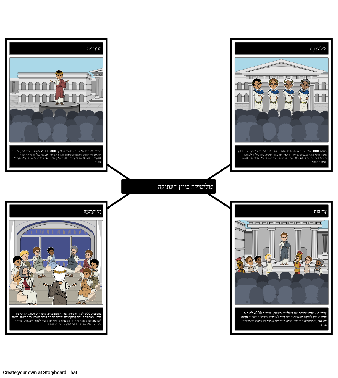 בסביבות 500 לפני הספירה יצרו אתונאים דמוקרטיה שמשמעותה שלטון העם . באתונה הייתה דמוקרטיה ישירה בה כל אזרח הצביע בכל נושא. הייתה להם אסיפה להכנת חוקים. כל אדם חופשי יכול היה לדבר ולהצביע. הייתה להם גם מועצה של 500 ומערכת בתי משפט.