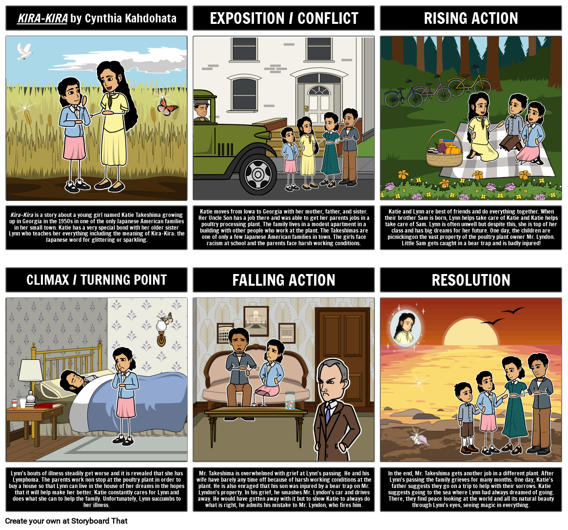 Kira-Kira is a story about a young girl named Katie Takeshima growing up in Georgia in the 1950s in one of the only Japanese American families in her small town. Katie has a very special bond with her older sister Lynn who teaches her everything including the meaning of Kira-Kira: the Japanese word for glittering or sparkling.