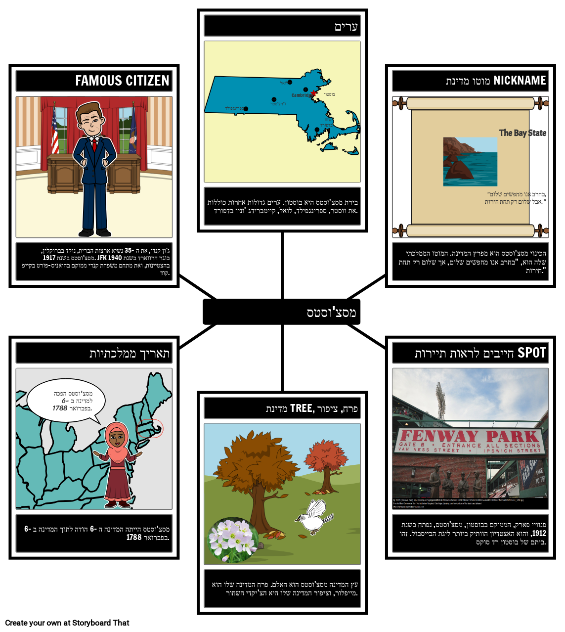 סטודנטים יכולים להמחיש עובדות על מדינת מסצ'וסטס כמו הבירה, המוטו, אנשים מפורסמים ועוד!