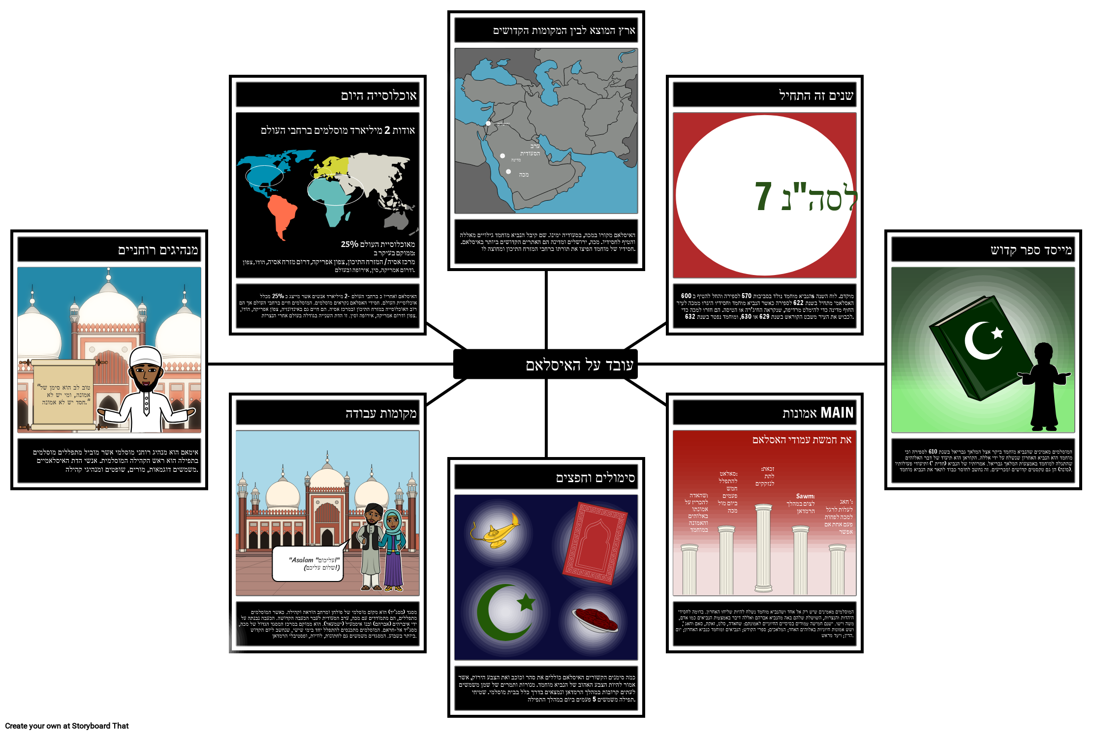התלמידים יכולים להמחיש עובדות חשובות על האיסלאם, כמו אמונות ליבה, מנהגים, מנהיגים ועוד!