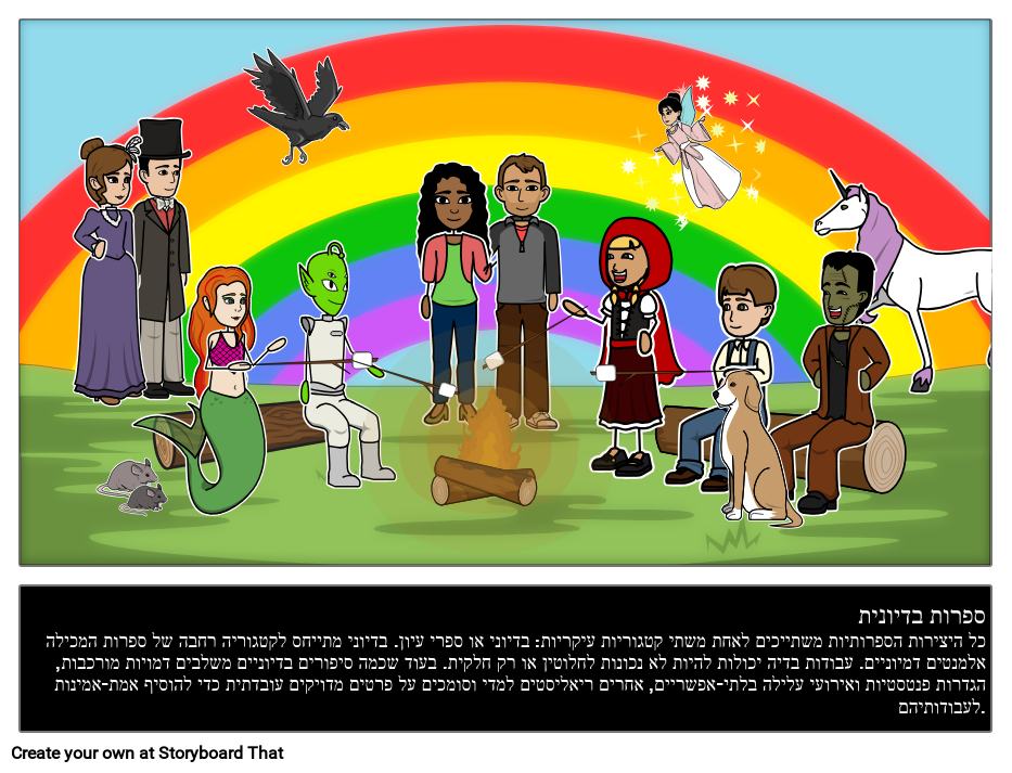 כל היצירות הספרותיות מתחלקות לאחת משתי קטגוריות עיקריות: ספרות בדיונית או סיפורת. הספרות מתייחסת לקטגוריה רחבה של ספרות המכילה אלמנטים דמיוניים. עבודות של בדיוני יכול להיות לגמרי או לגמרי לא נכון. בעוד כמה סיפורים בדיוניים לשלב דמויות מאופרות, הגדרות פנטסטי, ואירועים העלילה בלתי סביר, אחרים הם מציאותיים למדי להסתמך על פרטים מדויקים עובדתית כדי להוסיף verisimilitude לעבודתם.