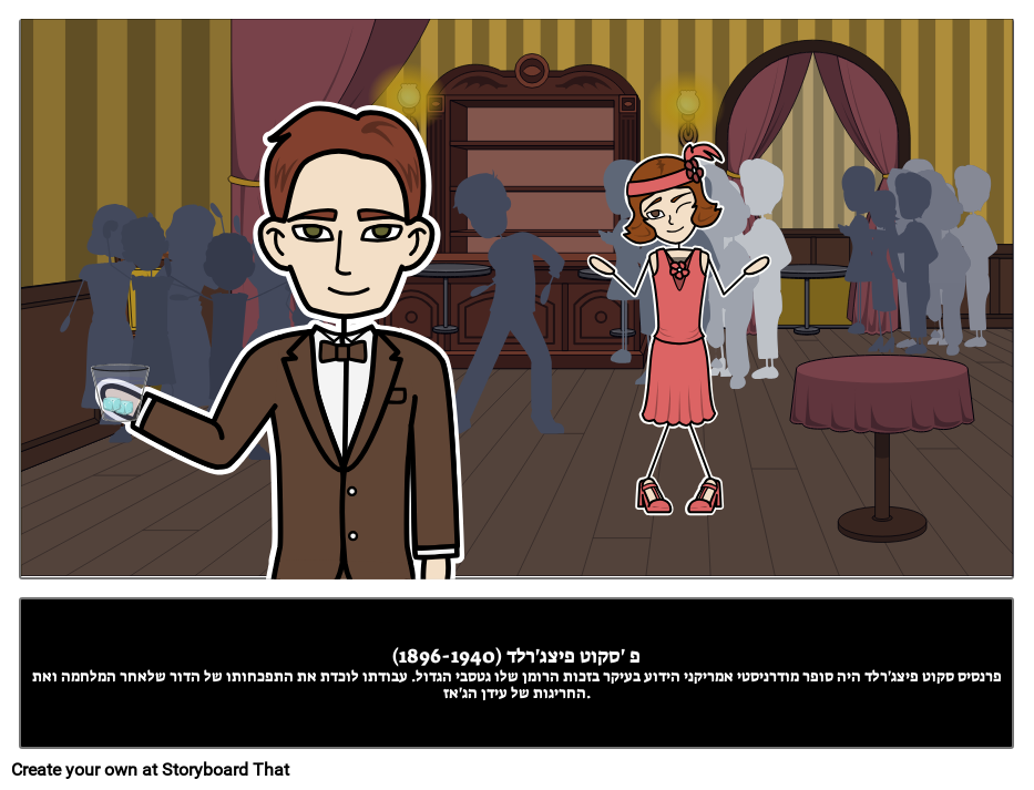 פ 'סקוט פיצג'רלד (1896-1940)פרנסיס סקוט פיצג'רלד היה סופר מודרניסטי אמריקני הידוע בעיקר בזכות הרומן שלו גטסבי הגדול. עבודתו לוכדת את התפכחותו של הדור שלאחר המלחמה ואת החריגות של עידן הג'אז.