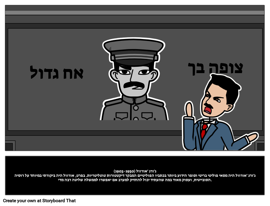 ג'ורג 'אורוול (1903-1950)ג'ורג 'אורוול היה מסאי פוליטי בריטי וסופר הידוע ביותר בכתביו הפוליטיים המבקר דיקטטורות טוטליטריות. בפרט, אורוול היה ביקורתי במיוחד על רוסיה הסובייטית, ועסוק מאוד במה שהעתיד יכול להחזיק למערב אם יאפשרו לממשלה שליטה רבה מדי.