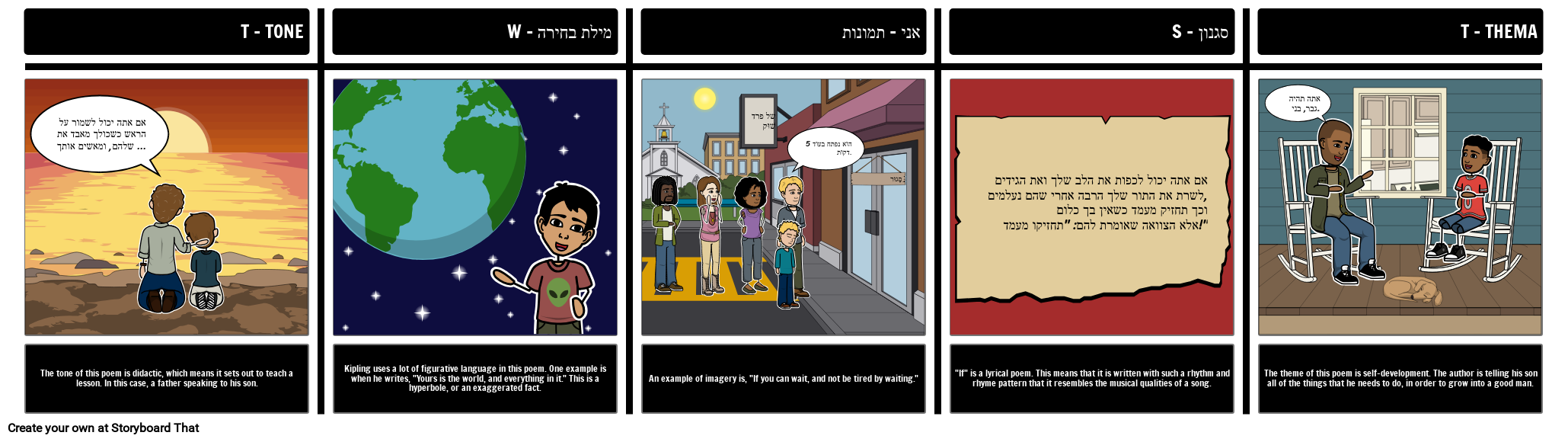 אם אתה יכול לכפות את הלב שלך ואת הגידים לשרת את התור שלך הרבה אחרי שהם נעלמים, וכך תחזיק מעמד כשאין בך כלום אלא הצוואה שאומרת להם: "תחזיקו מעמד!"