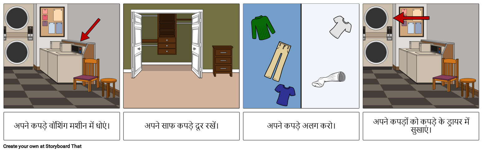 अनुक्रम उदाहरण - कपड़े धोने के चरण