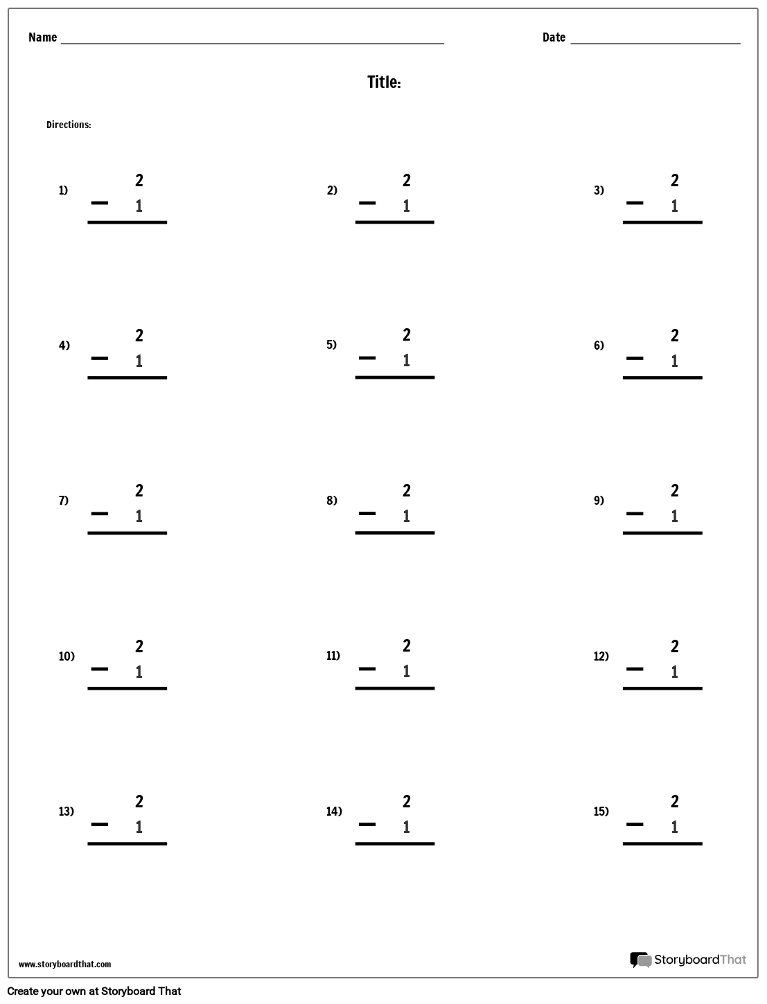 कस्टम घटाव कार्यपत्रक | अपने छात्रों के लिए सिंगल डिजिट घटाव वर्कशीट को कस्टम बनाएं!