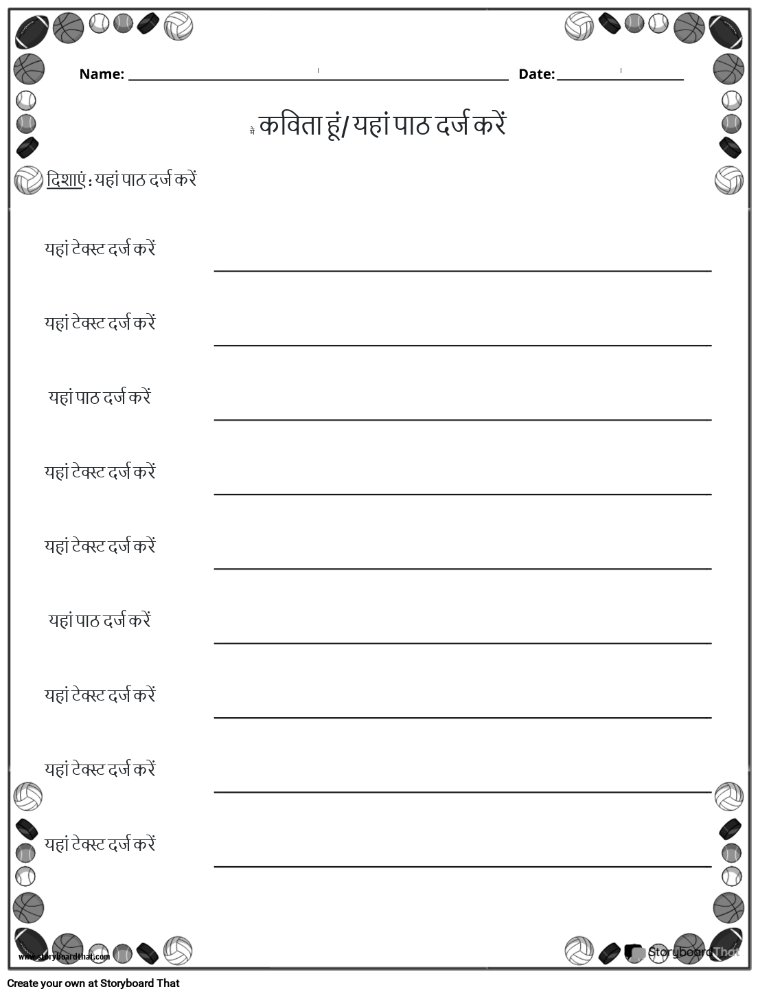 काव्य कार्यपत्रक योजना टेम्पलेट। मैं कविता हूँ।