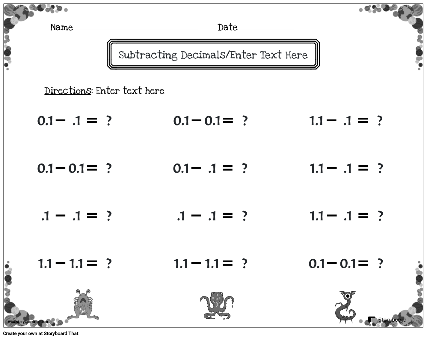 Subtracting Decimals/Enter Text Here