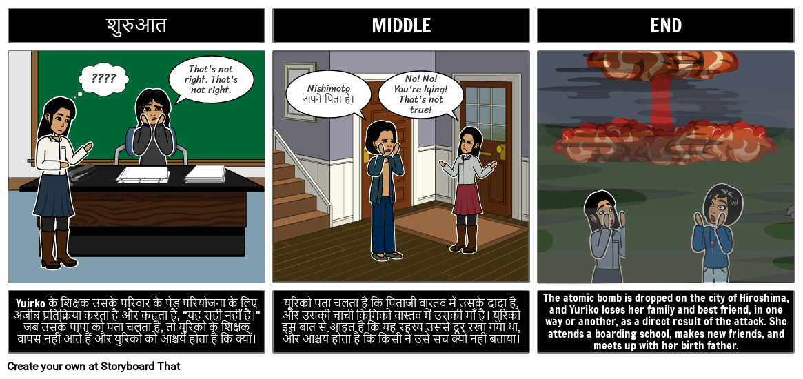 The atomic bomb is dropped on the city of Hiroshima, and Yuriko loses her family and best friend, in one way or another, as a direct result of the attack. She attends a boarding school, makes new friends, and meets up with her birth father.