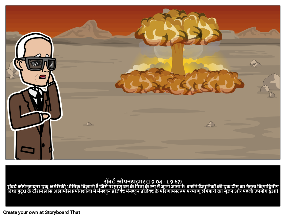 रॉबर्ट ओपनहाइमर (1 9 04 - 1 9 67)रॉबर्ट ओपेनहाइमर एक अमेरिकी भौतिक विज्ञानी है जिसे परमाणु बम के पिता के रूप में जाना जाता है। उन्होंने वैज्ञानिकों की एक टीम का नेतृत्व कियाद्वितीय विश्व युद्ध के दौरान लॉस अलामोस प्रयोगशाला में मैनहट्टन प्रोजेक्ट मैनहट्टन प्रोजेक्ट के परिणामस्वरूप परमाणु हथियारों का सृजन और पहला उपयोग हुआ।