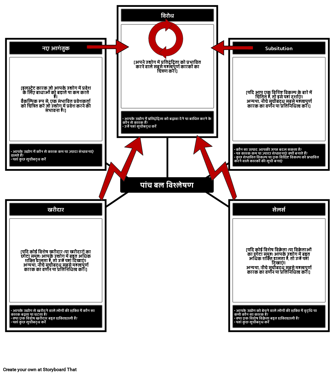 • आपके उद्योग को बेचने वाले लोगों की शक्ति में वृद्धि या कमी कौन सा कारक है?• क्या एक विशेष विक्रेता बहुत शक्तिशाली है?• यहां कुछ सूचीबद्ध करें