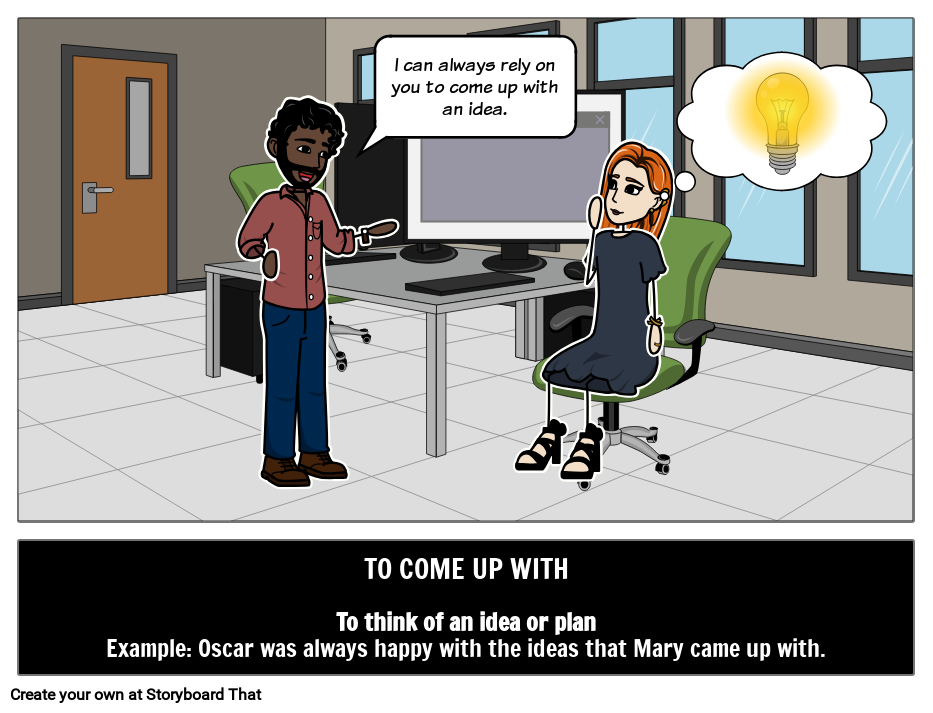 TO COME UP WITHTo think of an idea or planExample: Oscar was always happy with the ideas that Mary came up with.