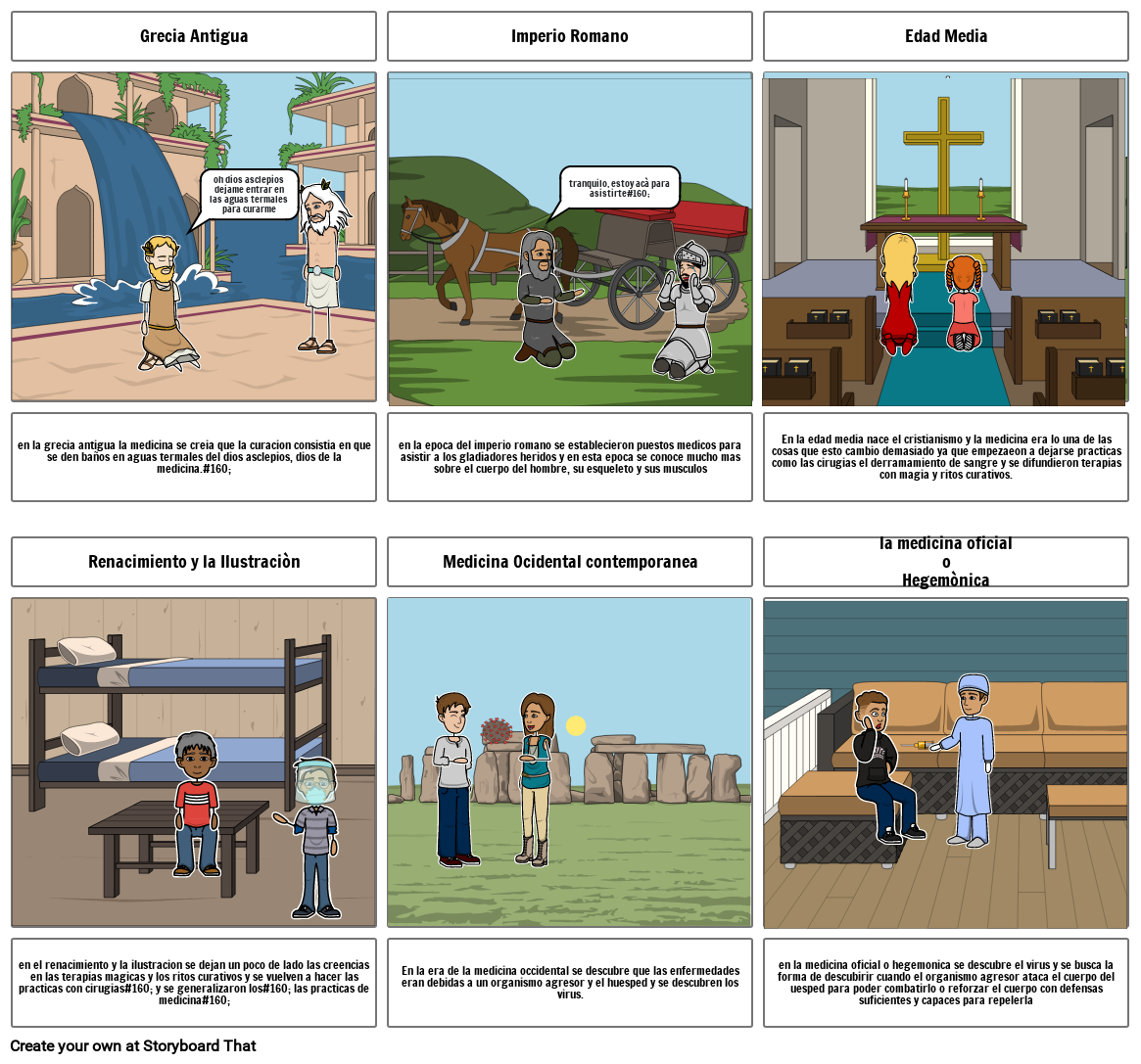 en la epoca del imperio romano se establecieron puestos medicos para asistir a los gladiadores heridos y en esta epoca se conoce mucho mas sobre el cuerpo del hombre, su esqueleto y sus musculos