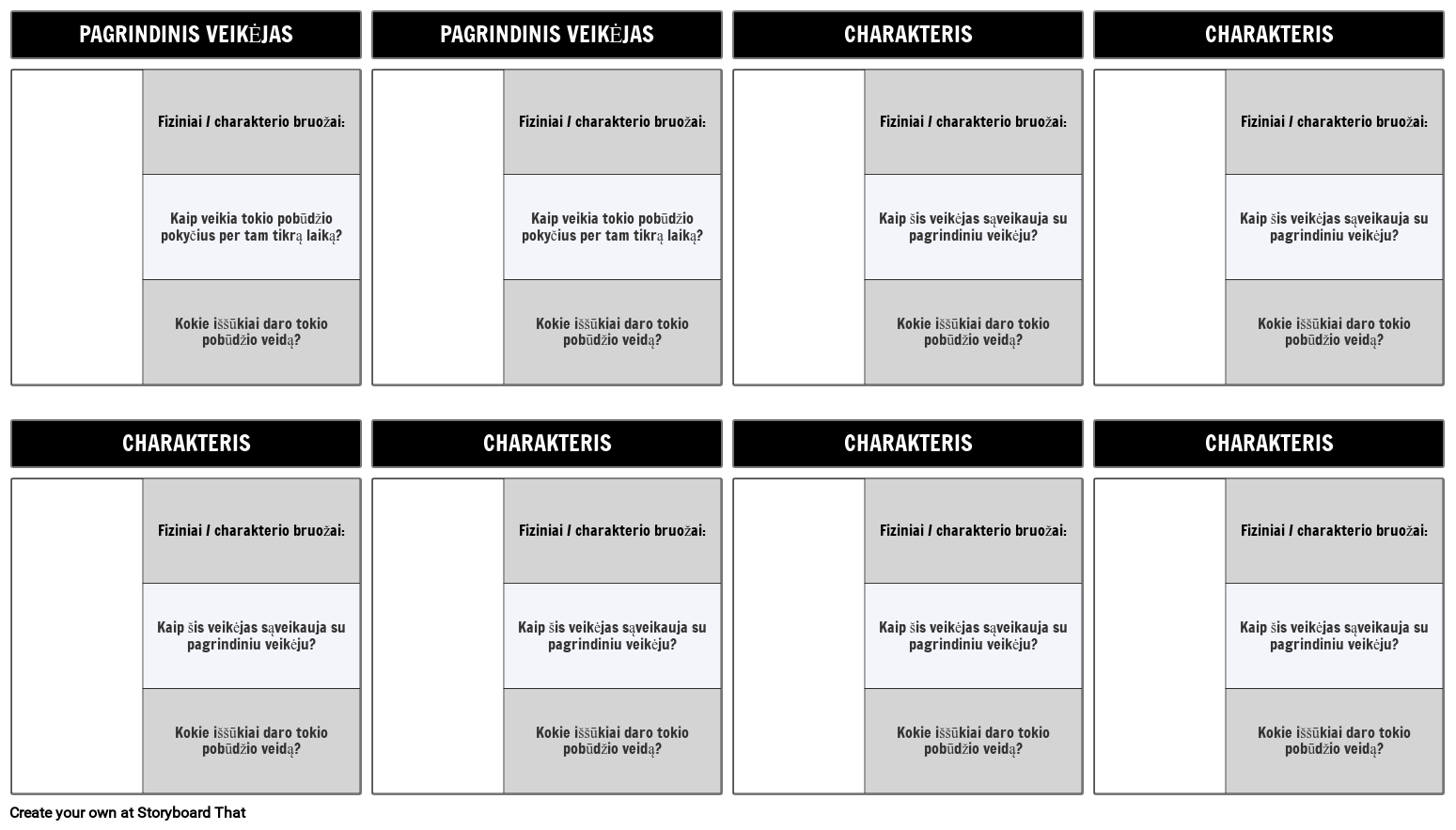 Simbolių žemėlapio šablonas su klausimais. Lengvai sekite literatūros veikėjus.