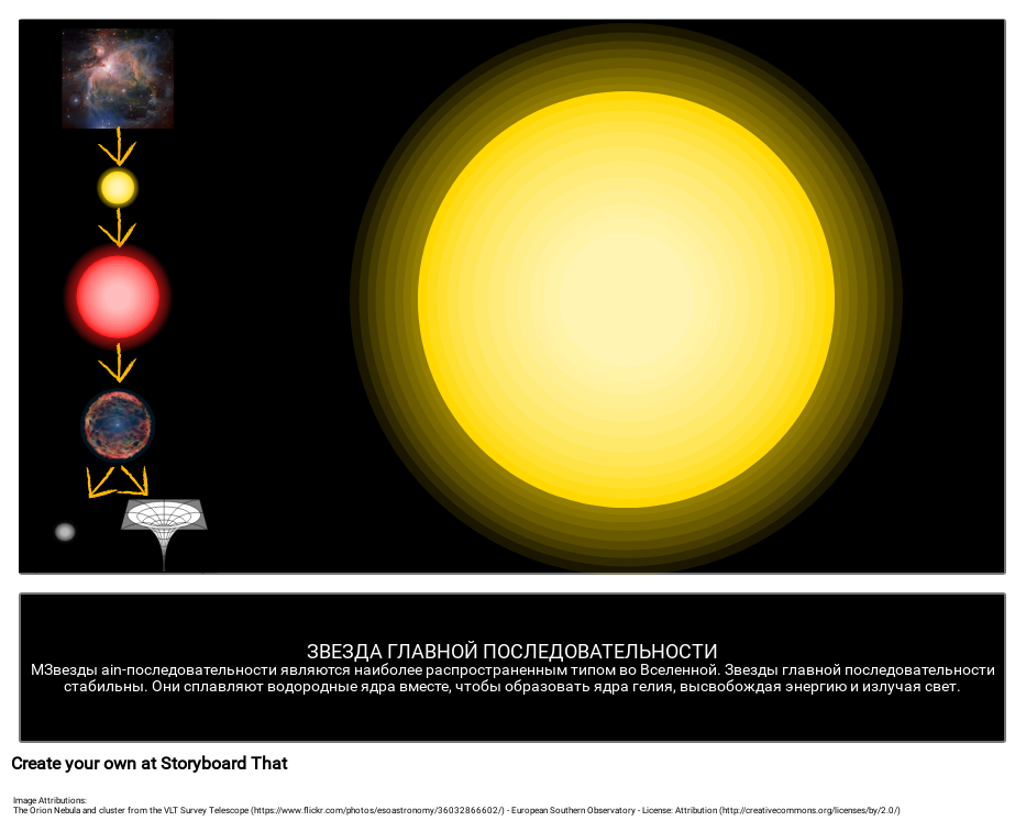 • ЗВЕЗДА ГЛАВНОЙ ПОСЛЕДОВАТЕЛЬНОСТИМЗвезды ain-последовательности являются наиболее распространенным типом во Вселенной. Звезды главной последовательности стабильны. Они сплавляют водородные ядра вместе, чтобы образовать ядра гелия, высвобождая энергию и излучая свет.