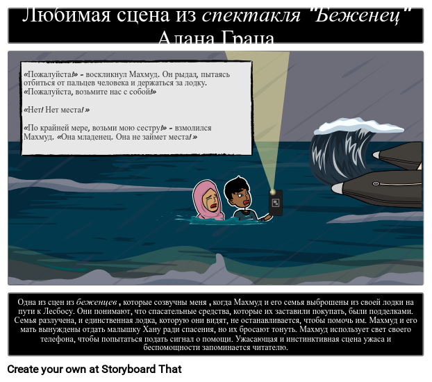 «Пожалуйста!» - воскликнул Махмуд. Он рыдал, пытаясь отбиться от пальцев человека и держаться за лодку. «Пожалуйста, возьмите нас с собой!» «Нет! Нет места! » «По крайней мере, возьми мою сестру!» - взмолился Махмуд. «Она младенец. Она не займет места! »