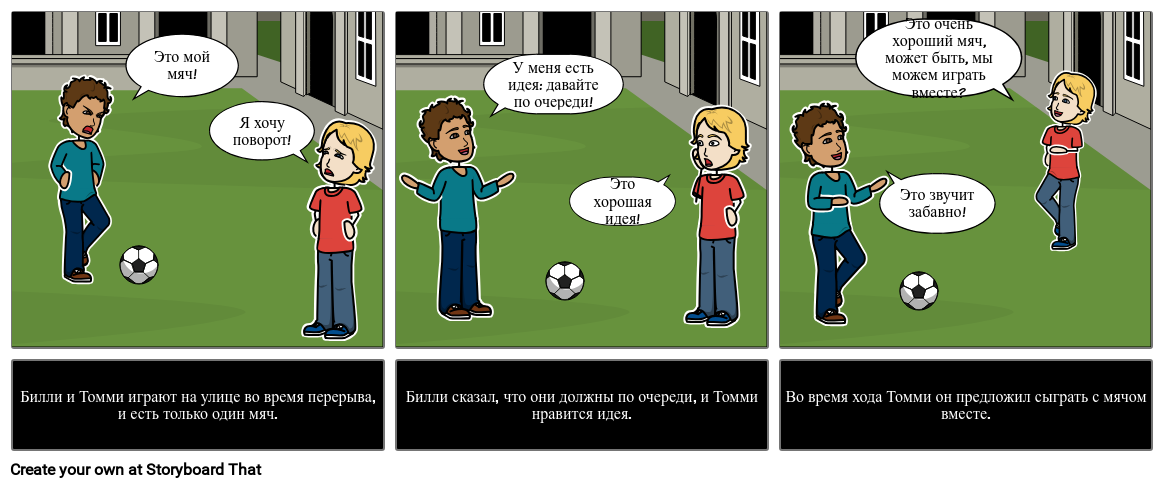 Билли и Томми играют на улице во время перерыва, и есть только один мяч.