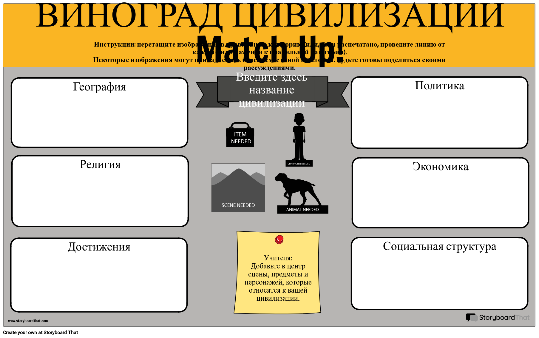 Учителя: Добавьте в центр сцены, предметы и персонажей, которые относятся к вашей цивилизации.