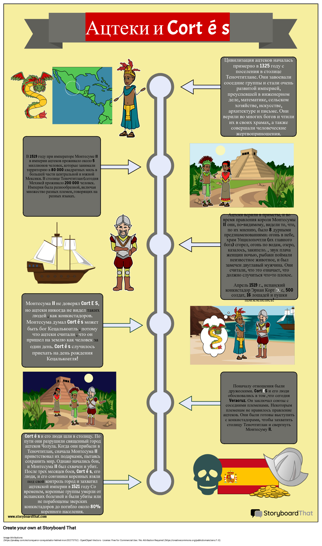 • Ацтеки верили в приметы, и во время правления короля Монтесумы II они, по-видимому, видели то, что, по их мнению, было 8 дурными предзнаменованиями: огонь в небе, храм Уицилопочтли (их главного бога) сгорел, огонь по водам, озеро, казалось, закипело. , звук плача женщин ночью, рыбаки поймали неизвестное животное, и был замечен двуглавый мужчина. Они считали, что это означает, что должно случиться что-то плохое. Апрель 1519 г., испанский конкистадор Эрнан Корт Э. с, 500 солдат, 16 лошадей и пушки приземлились!