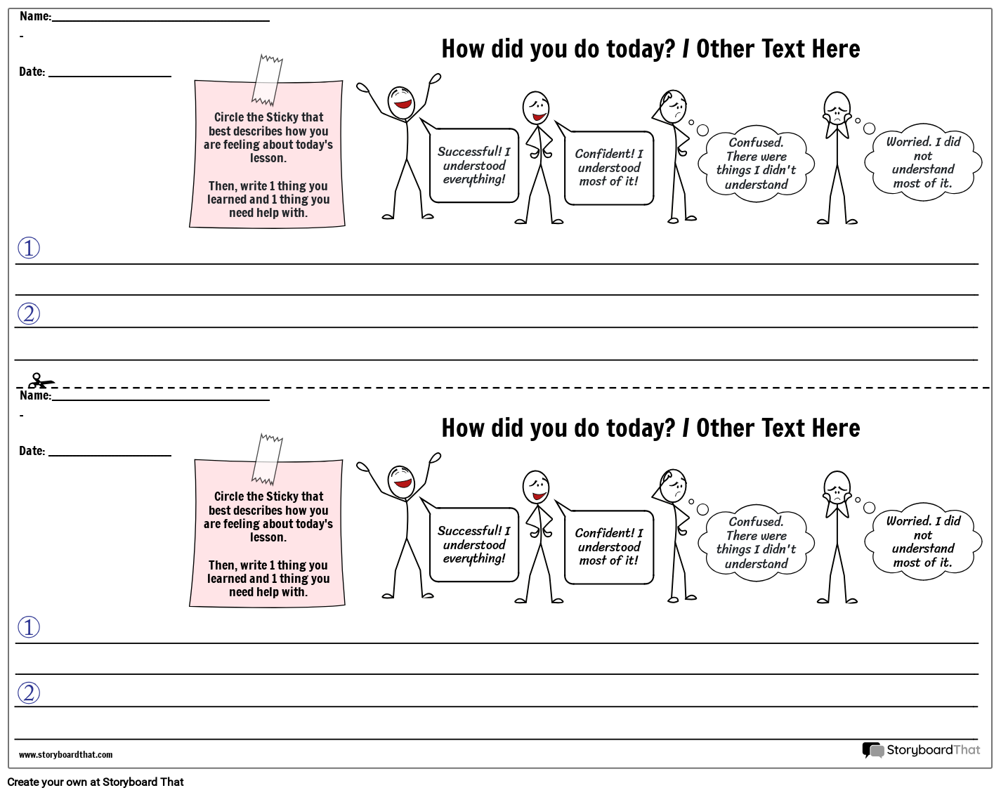 • Circle the Sticky that best describes how you are feeling about today's lesson.Then, write 1 thing you learned and 1 thing you need help with.