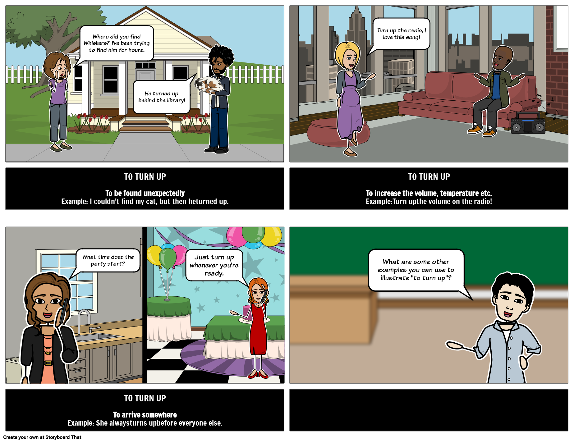 Using Storyboard That you can prepare a visual dictionary of phrasal verbs quickly and easily. Even better than that, have your students create their own phrasal verb visual definitions.
