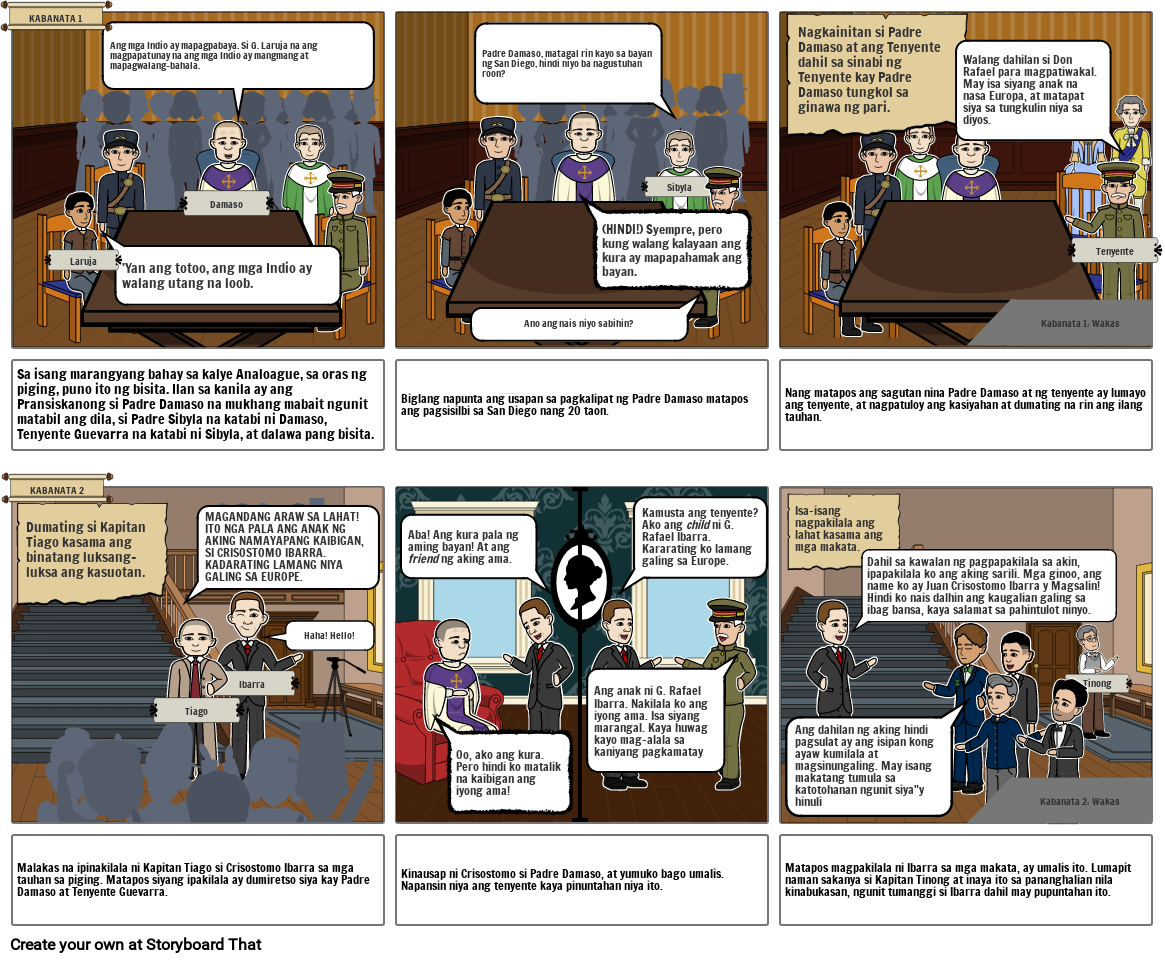 • Dahil sa kawalan ng pagpapakilala sa akin, ipapakilala ko ang aking sarili. Mga ginoo, ang name ko ay Juan Crisostomo Ibarra y Magsalin! Hindi ko nais dalhin ang kaugalian galing sa ibag bansa, kaya salamat sa pahintulot ninyo.