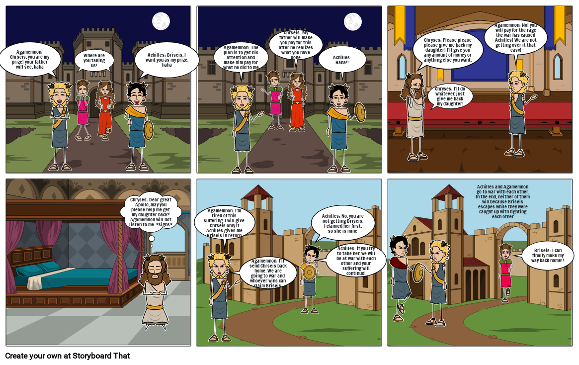 Agamemnon: The plan is to get his attention and make him pay for what he did to me