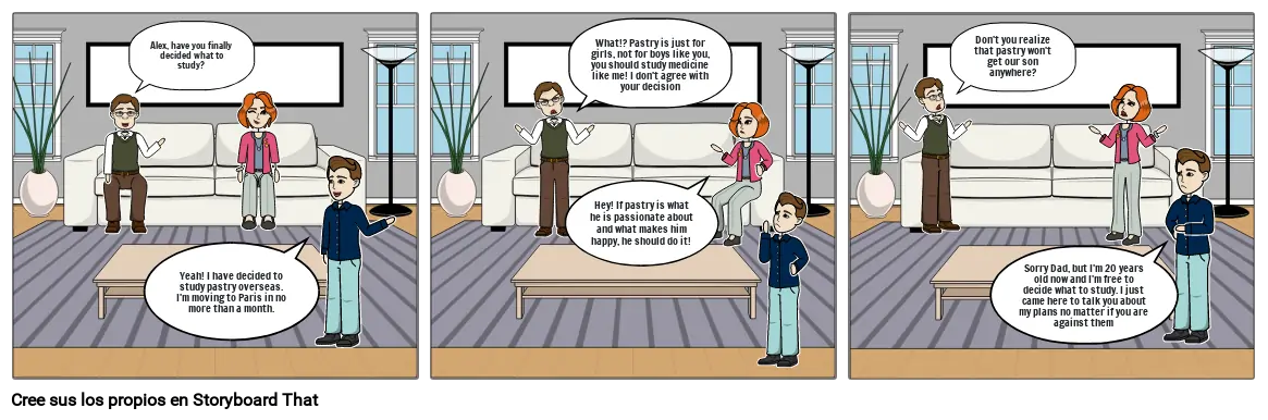 What!? Pastry is just for girls, not for boys like you, you should study medicine like me! I don't agree with your decision