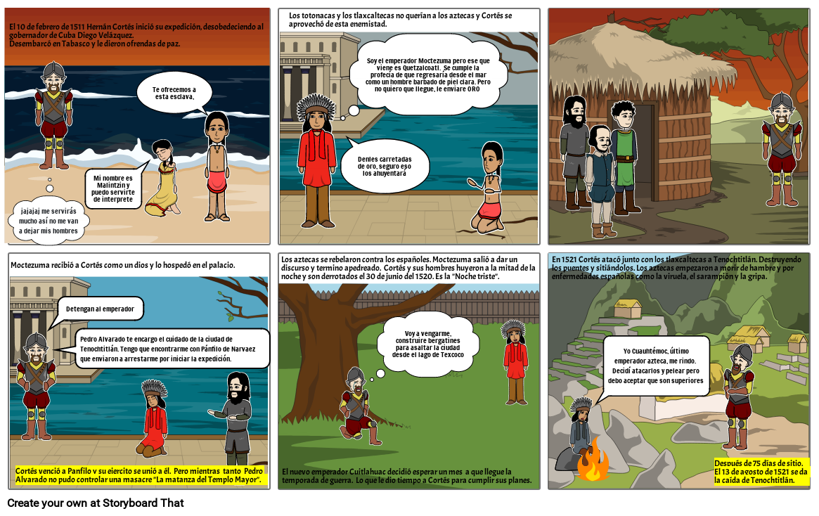 Los aztecas se rebelaron contra los españoles. Moctezuma salió a dar un discurso y termino apedreado.  Cortés y sus hombres huyeron a la mitad de la noche y son derrotados el 30 de junio del 1520. Es la "Noche triste".