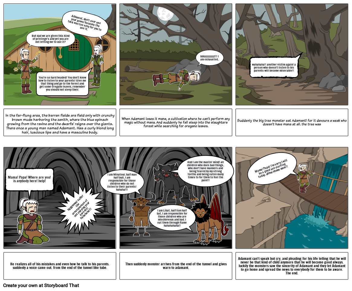 Adamant can't speak but cry, and pleading for his life telling that he will never be that kind of child anymore that he will become good always. luckily the monsters saw the sincerity of Adamant and they let Adamant to go home and spread the news to everybody for them to be aware.The end.
