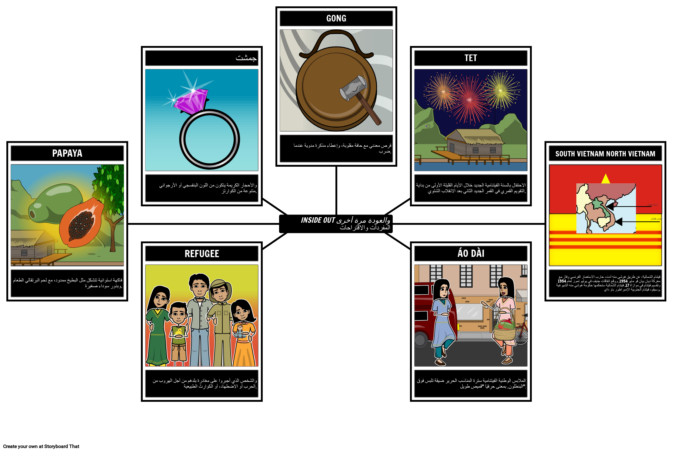 هناك العديد من مصطلحات المفردات والتلميحات الموجودة في رواية Inside Out and Back Again والتي ستكون مفيدة للطلاب لمعاينتها. سيساعد ذلك في الفهم العام للكتاب وفهم الفترة الزمنية. تتميز لوحة العمل هذه بالمصطلحات الأساسية جنبًا إلى جنب مع التعريفات والرسوم التوضيحية.